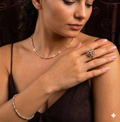 “El işçiliğiyle harmanlanmış bakır ve gümüş dokunuşu, doğal zarafetin bileğinizdeki yansıması.”