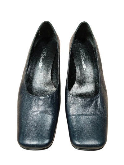 38 Numaradır. Özel yapımdır. Küt burun formunda, az topuklu, gerçek deriden yapılmış, şık bir ayakkabıdır. Siyah renklidir. Sadece bir,iki kez giyilmiştir. Temiz ve sağlam bir ayakkabıdır.