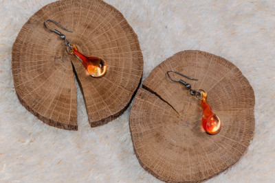 TAKI / Küpe / Turuncu Şeffaf Cam Küpe