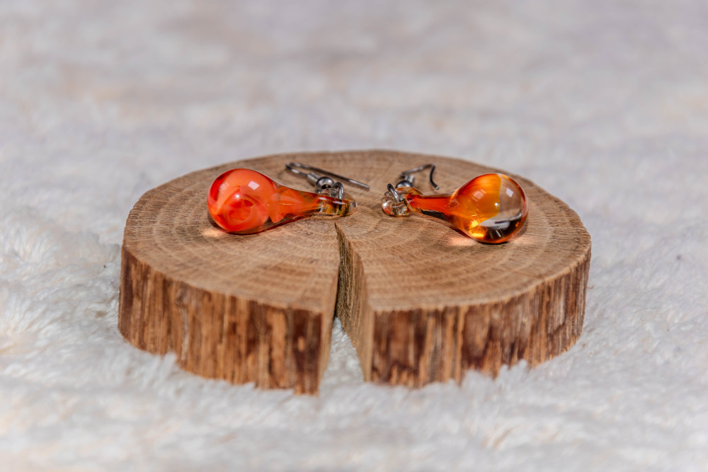 TAKI / Küpe / Turuncu Şeffaf Cam Küpe