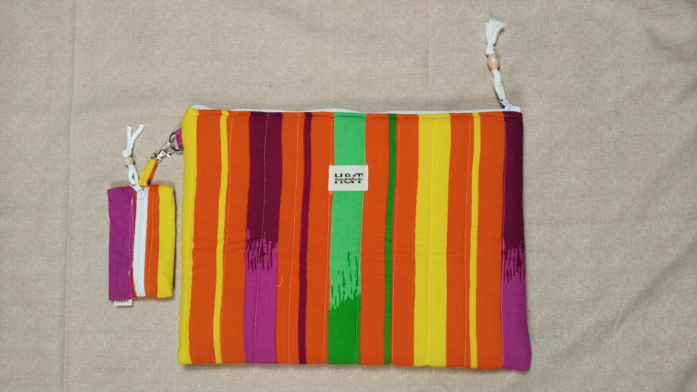 El yapımı butik üründür. Fermuarlıdır. Ek olarak yanında fermuarlı küçük çantası da vardır. ( İçine bozuk para, anahtar konulabilir. ) Dayanıklı pamuklu kumaştan yapılmış, dikiş kalitesi yüksektir. Hafif, yumuşak dolguludur. Özellikle dizüstü bilgisayar çantası olarak veya kişisel eşyalar için kullanılabilir. Yatay formdadır.Büyük boydur .En 32 cm , boy 45 cm.