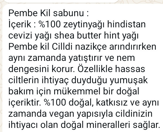 Ev yapımı doğal sabundur. Belirtilen içeriklerine % 100 Zeytinyağı, Hindistan cevizi yağı, shea butter katılmıştır.