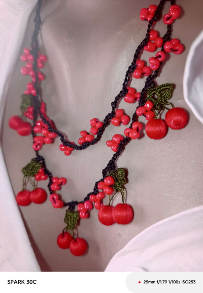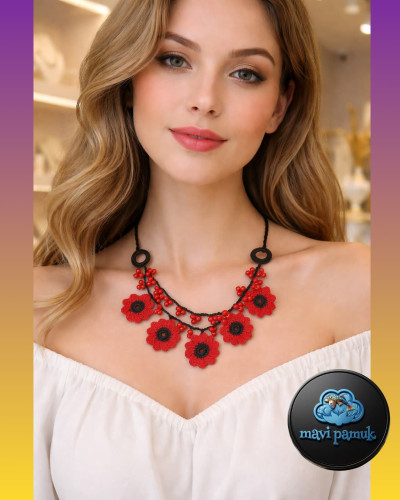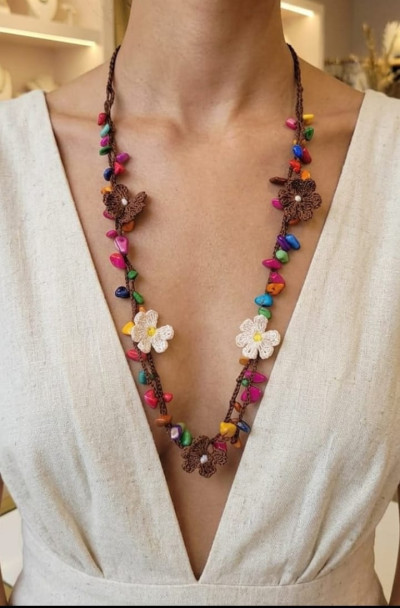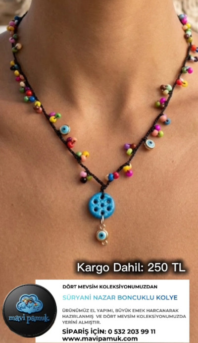• "Boncuk ve taşın uyumuyla modern, dikkat çekici kolye."
