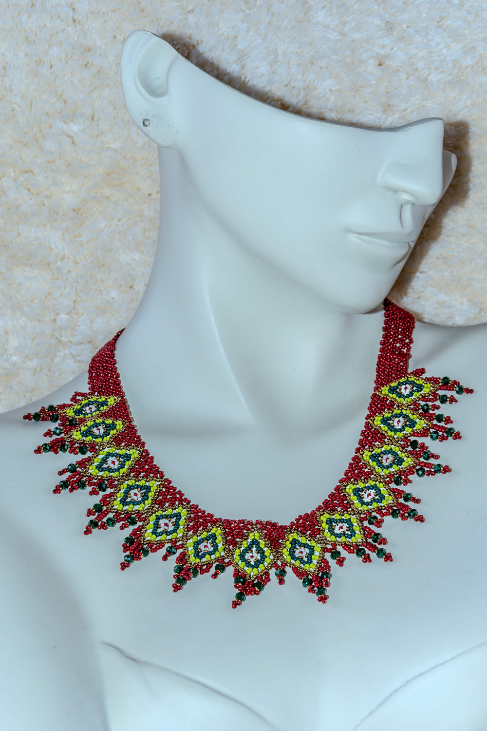 TAKI / Kolye / El Emeği Zümrütlü Bordo Otantik Kolye
