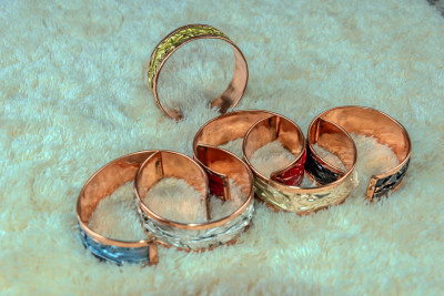 TAKI / Bileklik/ Dövülü Bakır Bileklik / Kırmızı